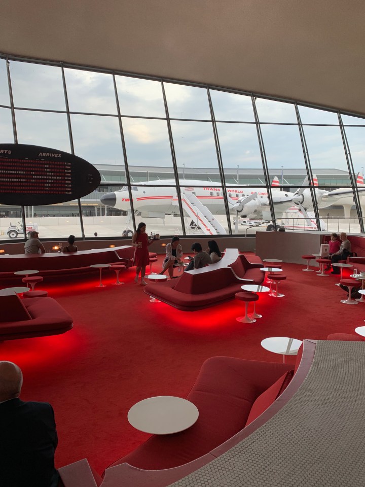 We are now awaiting another flight to TelAviv in several hours, but we don’t mind the six-hour layover. John and I were able to eat a nice dinner at the Paris Cafe in the recently renovated TWA Terminal. If you ever have a layover at JFK, run by the place! It’s next to Terminal 5 and can be reached via the Airtrain. With sixties music playing in the background and red/white decor all over, the nostalgia is palpable. There was even a Lockheed Constellation (“Connie”) plane on the tarmac that housed a bar. Definitely worth a visit!