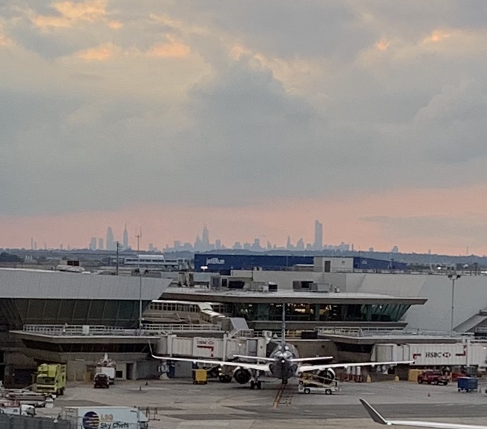 The three hours of travel to JFK in New York City passed quickly. I sat next to another lady named Linda, and she was a Jewish woman from Long Island who expressed her jealousy over our group trip. She couldn’t help but notice all the purple and white striped ribbons on 40 passengers’ luggage!